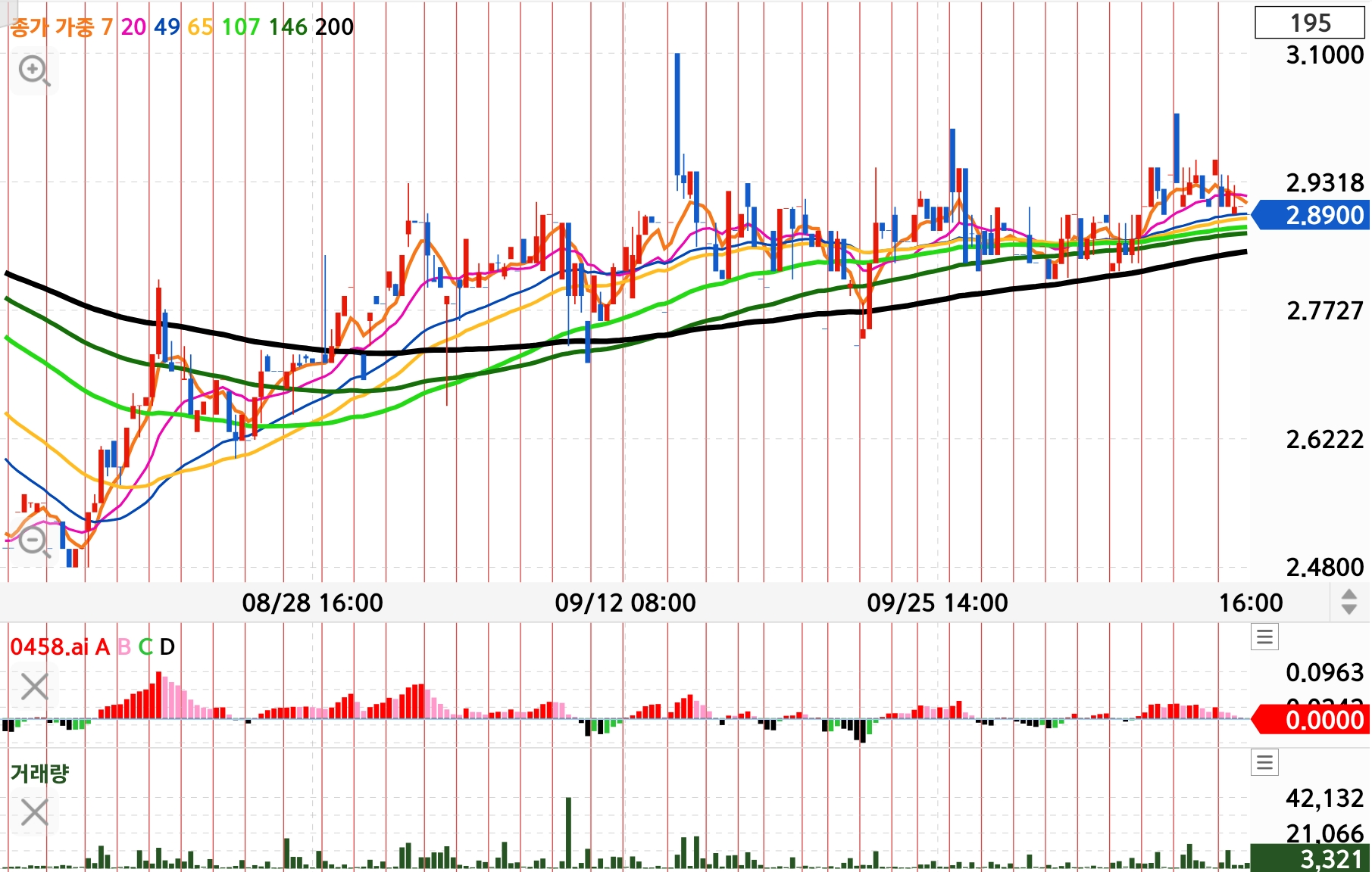 30주 이평에 거의 도달한 지점입니다.