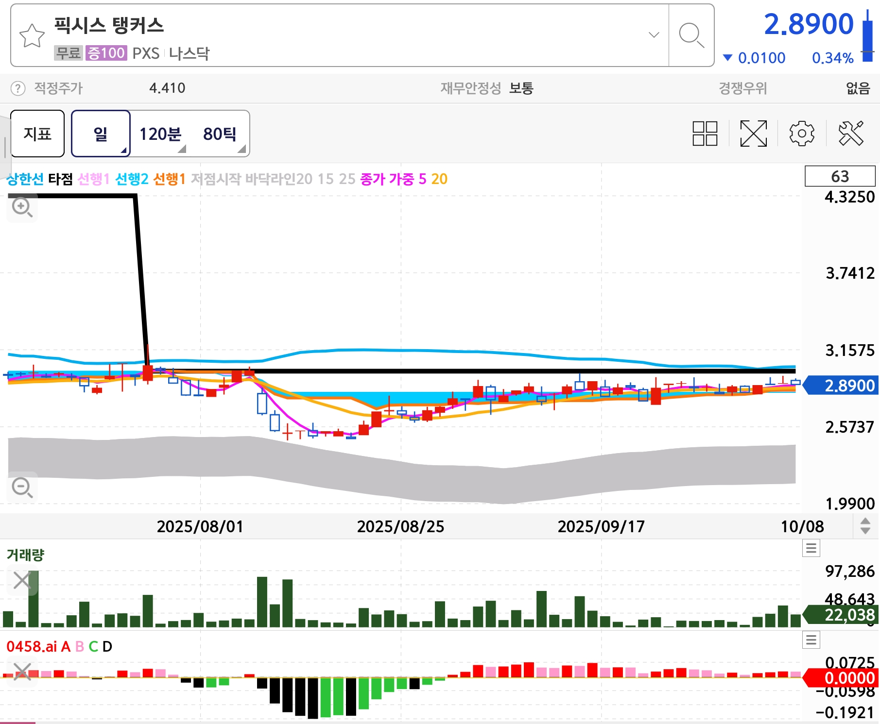 픽시스탱커스 콜워런트(PXSAW) 상승을 보다가 본주를 보게 되었습니다(오늘 콜워런트 상승1위)