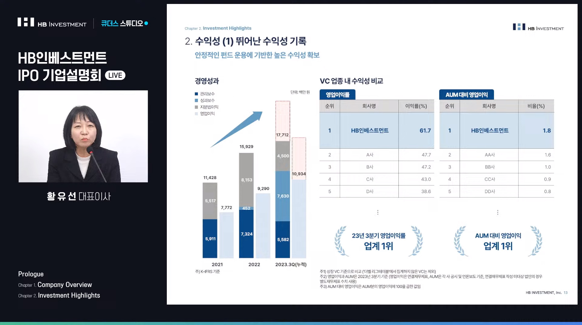 올해 상장된 신규주인 HB인베스트먼트는 HB그룹 중 막내이다.