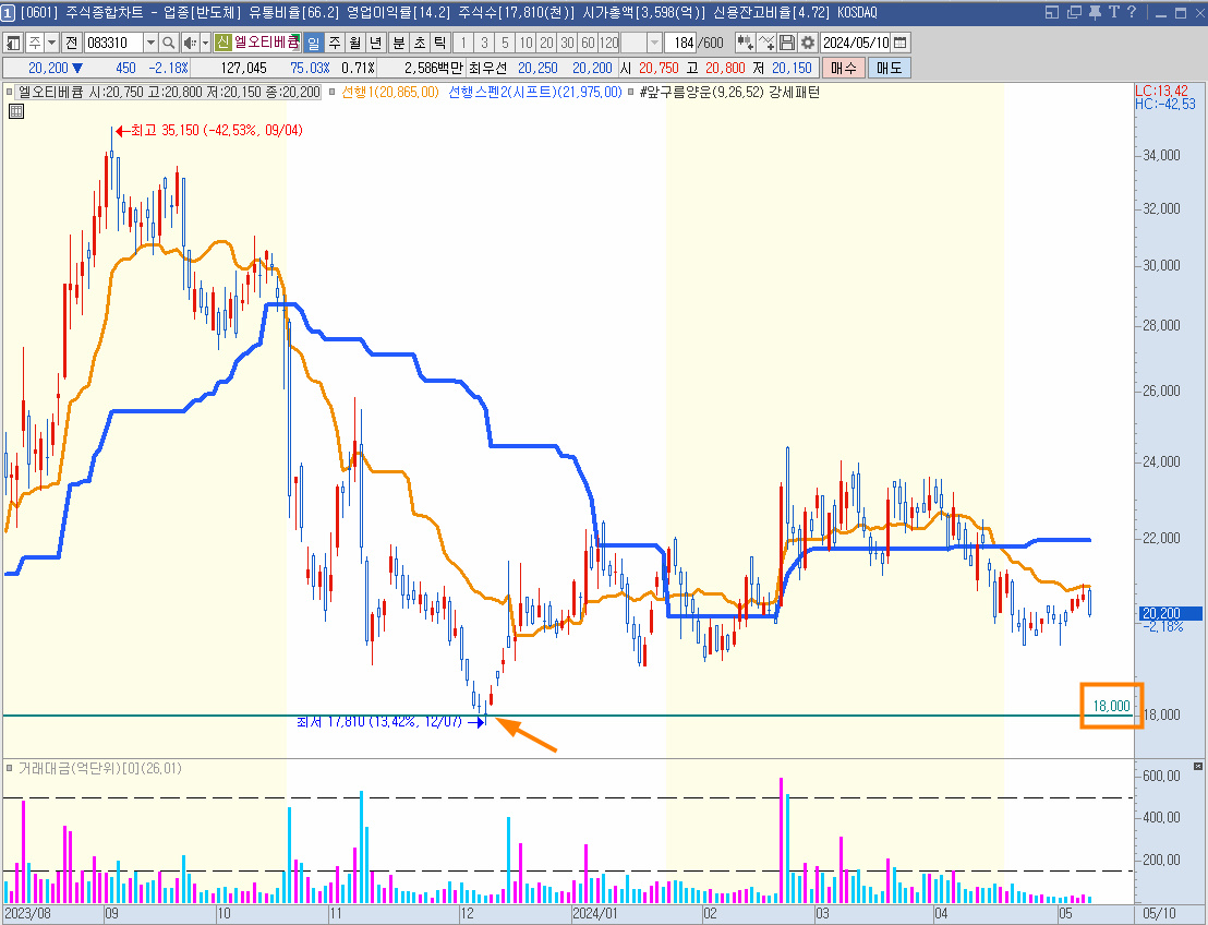 세력 입장에서 조금 더 공포를 주는 전략이면 23년 12월 7일 종가인 18000원을 보러 가는 것도 시나리오 중의 하나일 것인데 만약 그렇게 된다면 낙폭에 대한 반등도 상당히 클 것 같다.