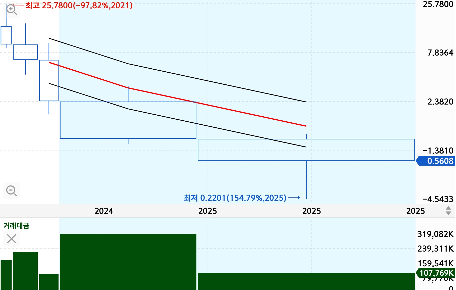 아직 승인된 제품이 없고, 임상 개발 초기 단계인 후보물질에 크게 의존하고 있다는 점이 리스크로 꼽힙니다. 선도 프로그램 또는 후보물질이 중단되거나 방향을 바꾼 사례가 있어 투자자 신뢰 회복 측면에서 도전 요인이 존재합니다. 바이오텍 특성상 개발비, 임상비가 크고 자금조달 부담이 있을 수 있다는 구조적 약점이 존재합니다.