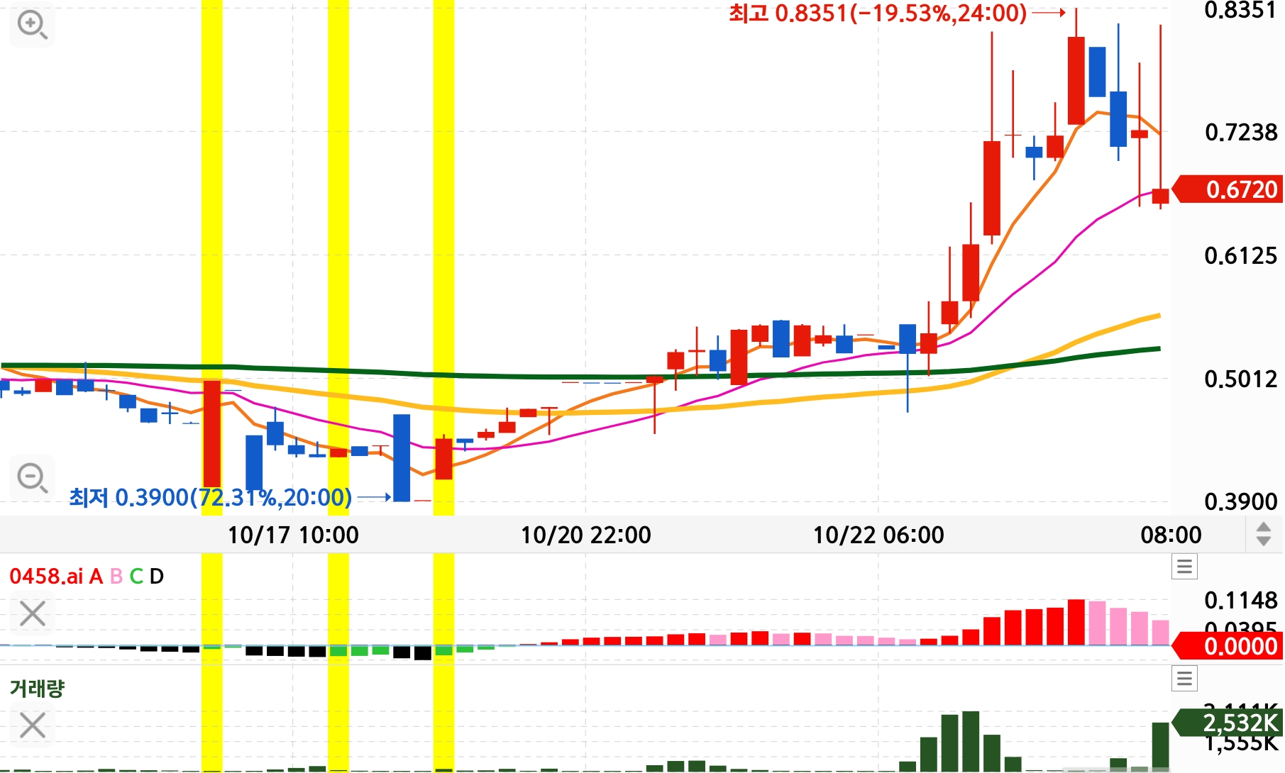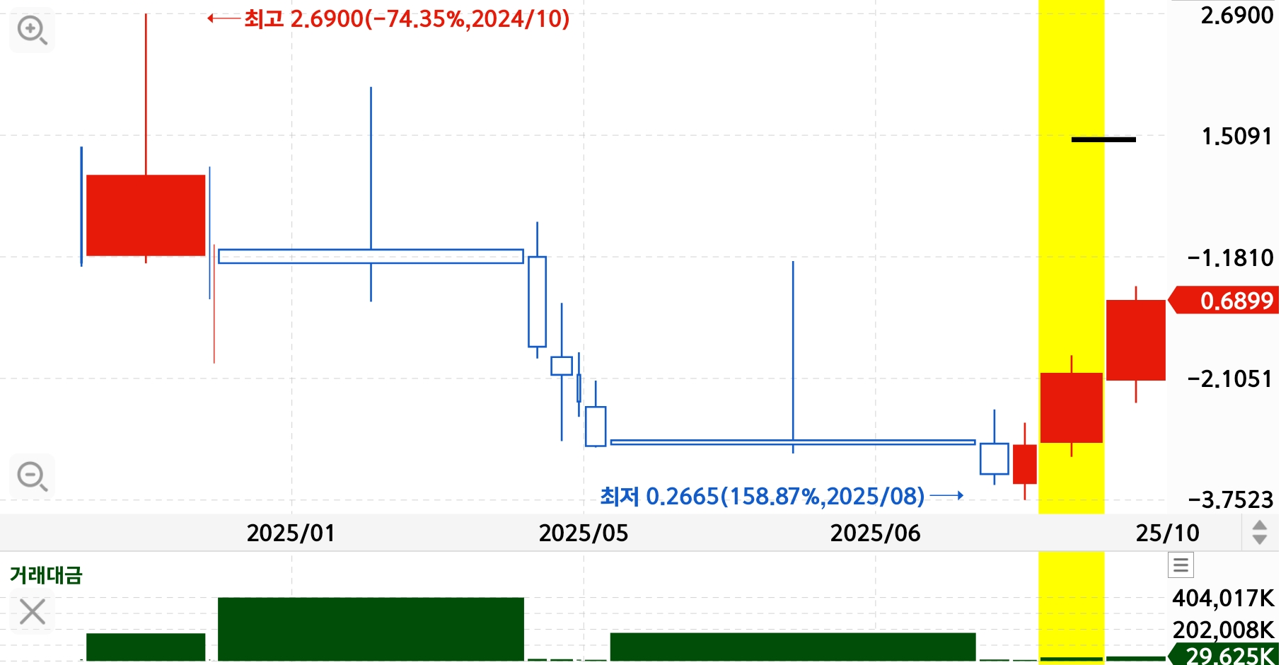 최근 6개월(2025-04-23→2025-10-23) 기준 EONR 5% 이상