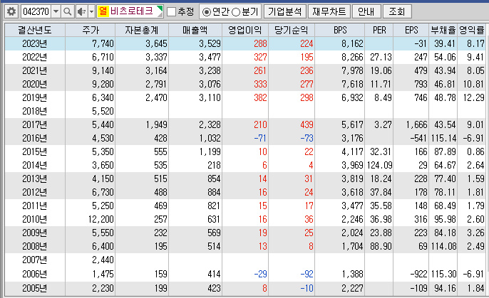 비츠로테크 재무추이