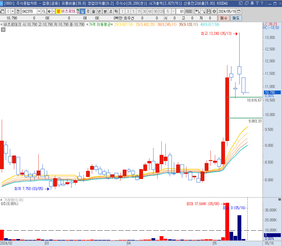 아래는 비츠로테크의 월봉이다.