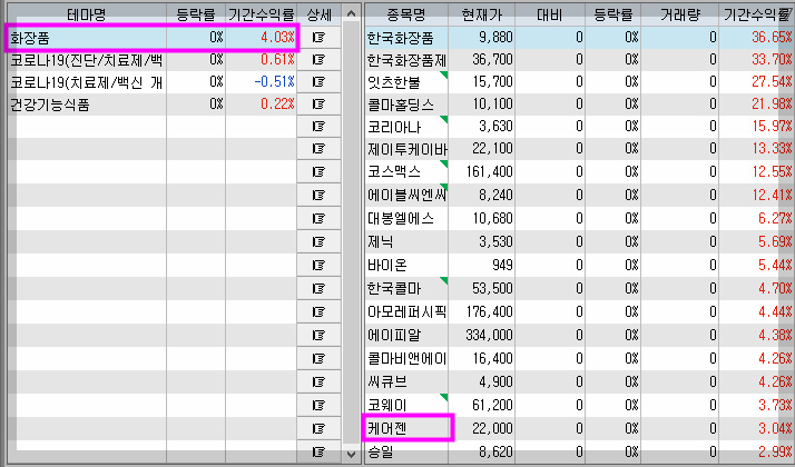 화장품 테마가 강세다.