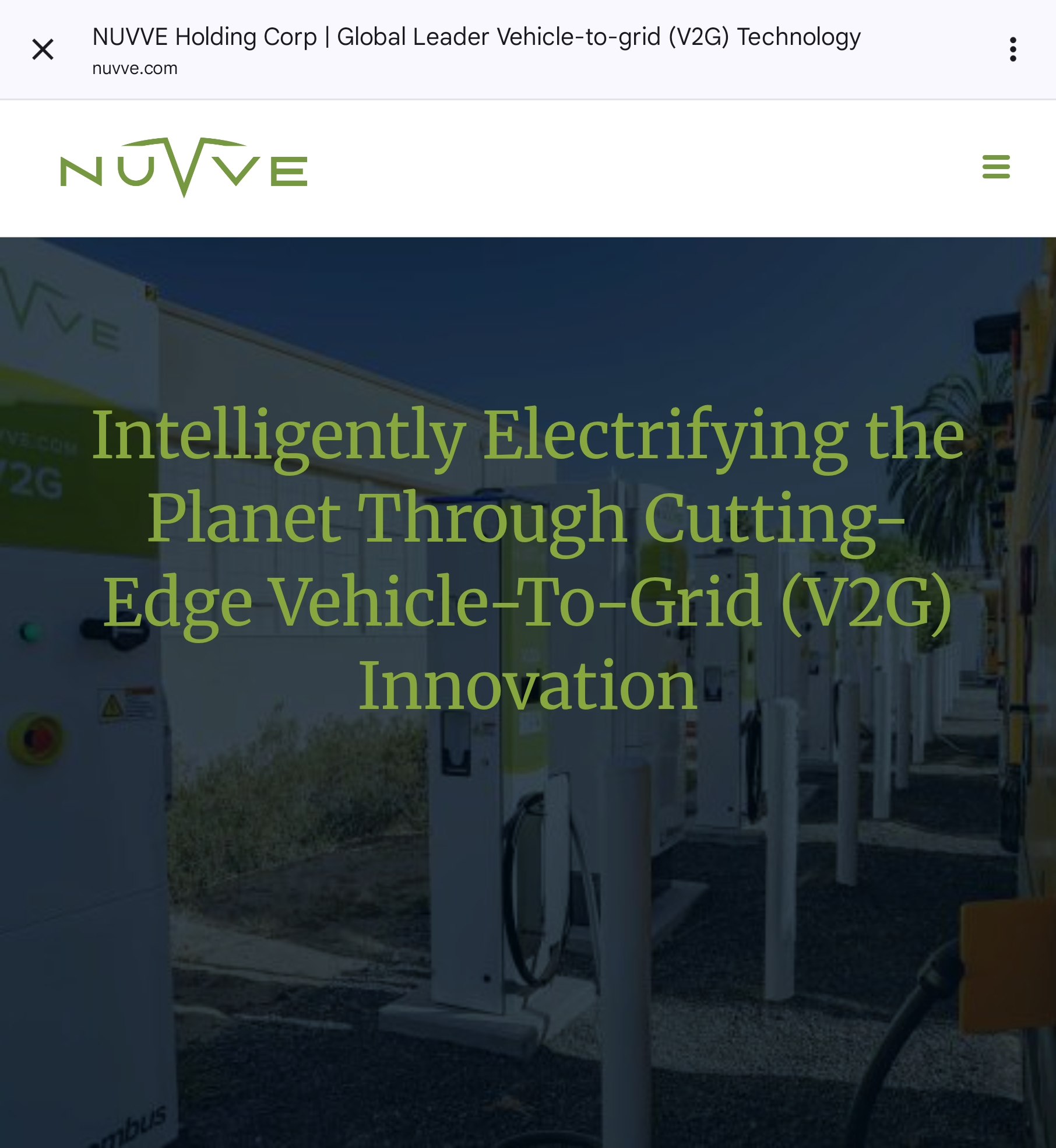 Nuvve Holding Corp.는 미국 캘리포니아주 샌디에이고에 본사를 둔 그린에너지 테크놀로지 기업으로, 전기차(EV)의 배터리와 전력망(Grid)을 양방향으로 연결하는 ‘차량-전력망(V2G: Vehicle-to-Grid)’ 플랫폼을 상업적으로 제공하고 있습니다. 이 회사의 핵심 제품인 “Grid Integrated Vehicle (GIVe)” 클라우드 기반 소프트웨어를 통해 EV 배터리와 정지형 배터리가 남는 전력을 지역 전력망에 되팔거나 피크 부하를 감축하는 가상발전소(VPP: Virtual Power Plant)처럼 작동할 수 있게 합니다. 주요 시장으로는 미국, 유럽(프랑스·덴마크 등), 일본이 포함되어 있으며, 학교버스·상업용차량을 대상으로 한 충전·전력 서비스 인프라 설치와 운영, 소프트웨어·프로페셔널 서비스까지 통합 제공하는 비즈니스 모델을 운영 중입니다.