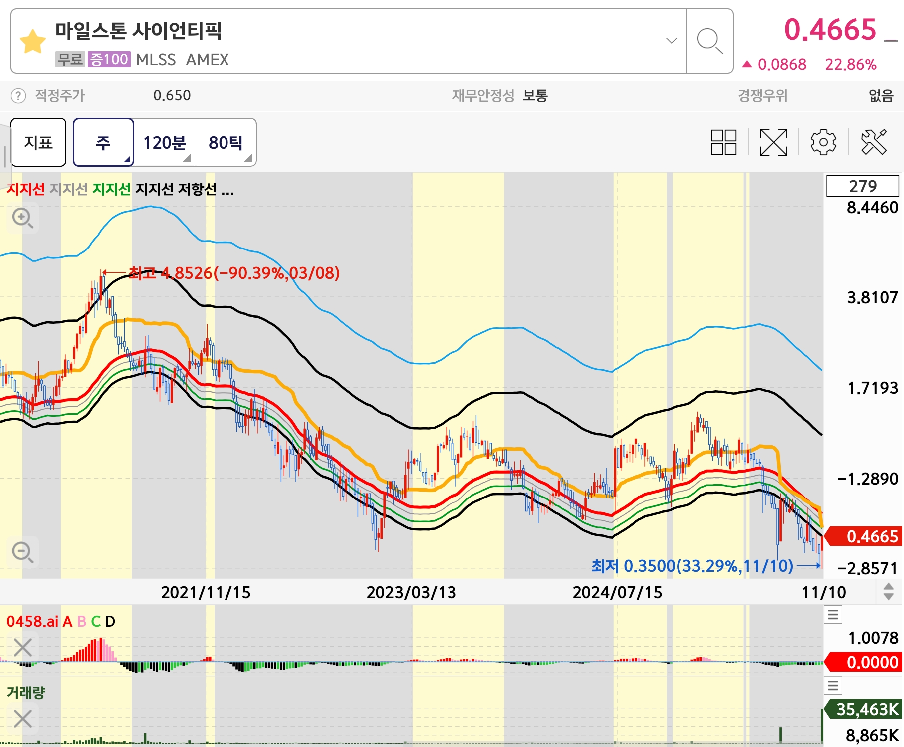 MLSS는 시총이 너무 작아서 기관 유입 → 상승 모멘텀이 거의 없음.