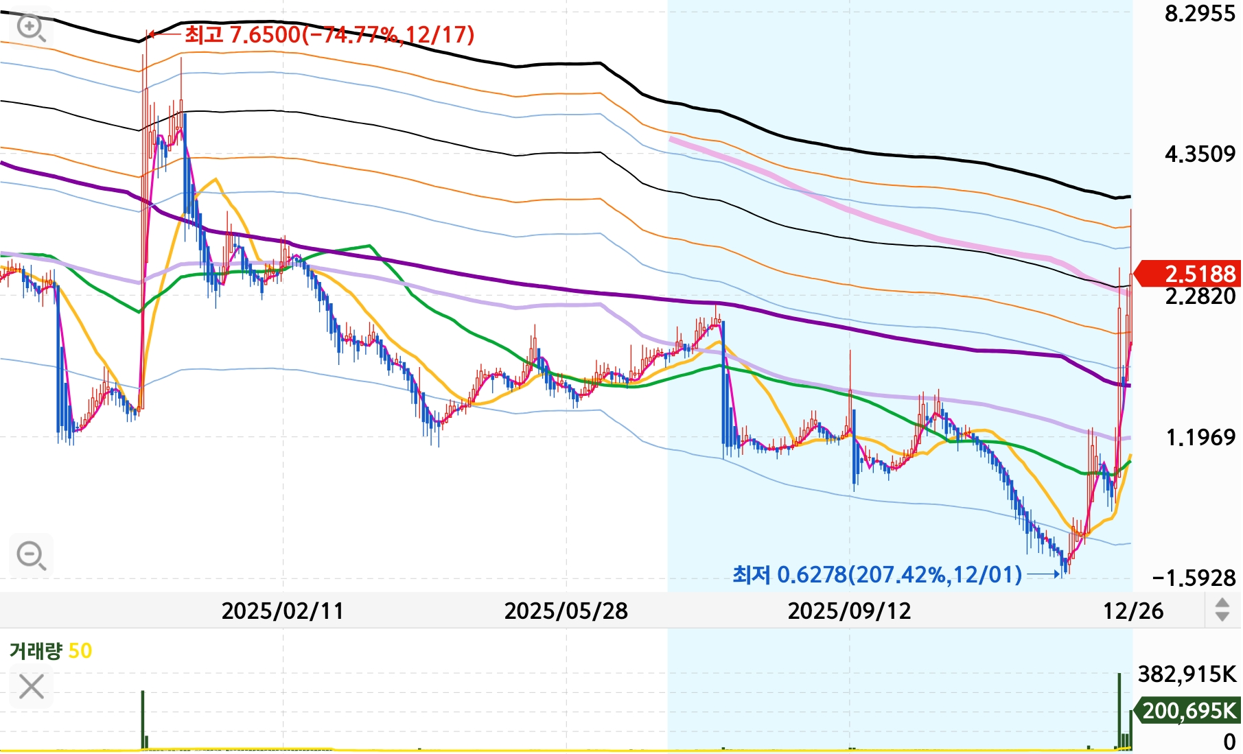 12월 26일에는 프리마켓 기준 +30% 이상 급등하기도 했습니다.