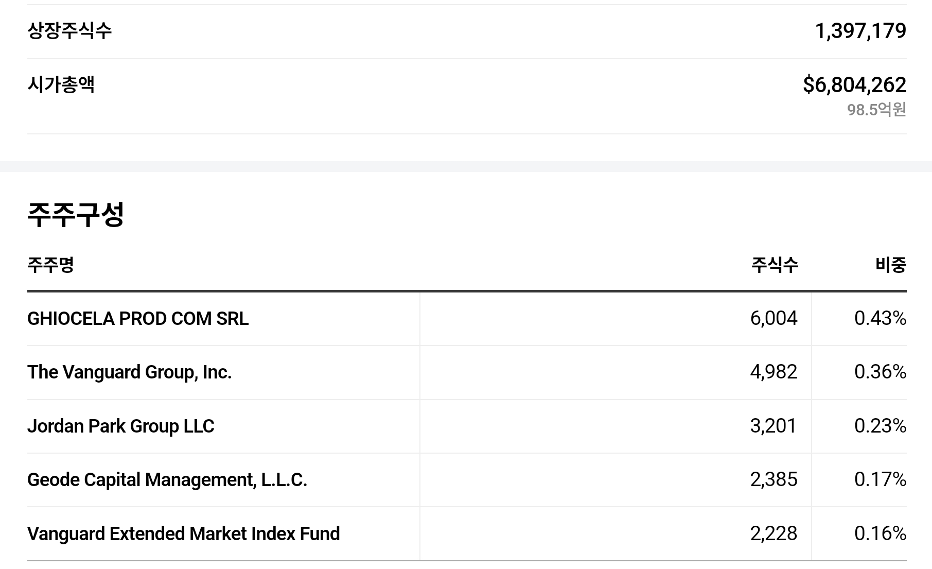 Ghiocela Prod Com SRL – 중소규모 투자자/기관 지분 보유