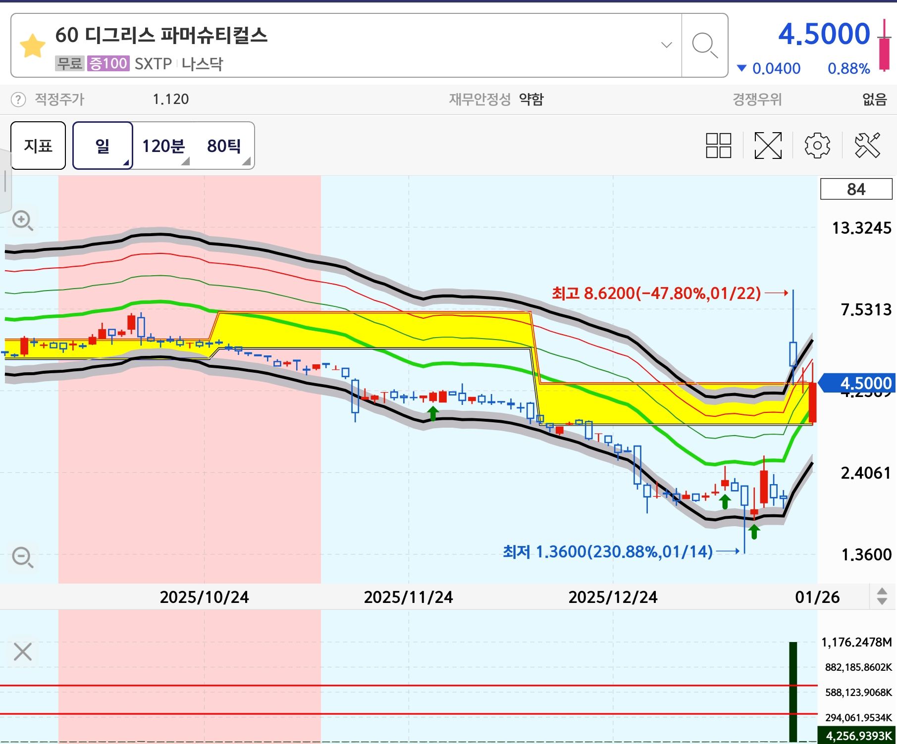 전형적인 임상단계 바이오텍이라 재무는 적자 상태이며 변동성이 매우 큽니다.
