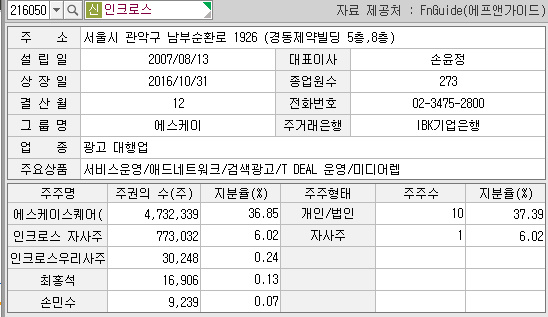 인크로스는 SK스퀘어의 계열회사이고 디지털 광고 미디어랩 사업과 국내 최초의 동영상 애드 네트워크인 '다윈(dawin)' , SK텔레콤의 T deal(티딜)' 운영 대행사업을 주력으로 영위하는 업체이다. 자회사 마인드노크를 통해 검색광고 및 디지털 광고 대행사업을 수행하고 있다.