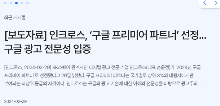 아래는 인크로스 웹사이트에서 발췌한 기업설명이다.