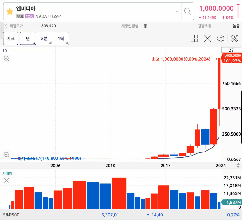 엔비디아 1000달러 돌파했다.