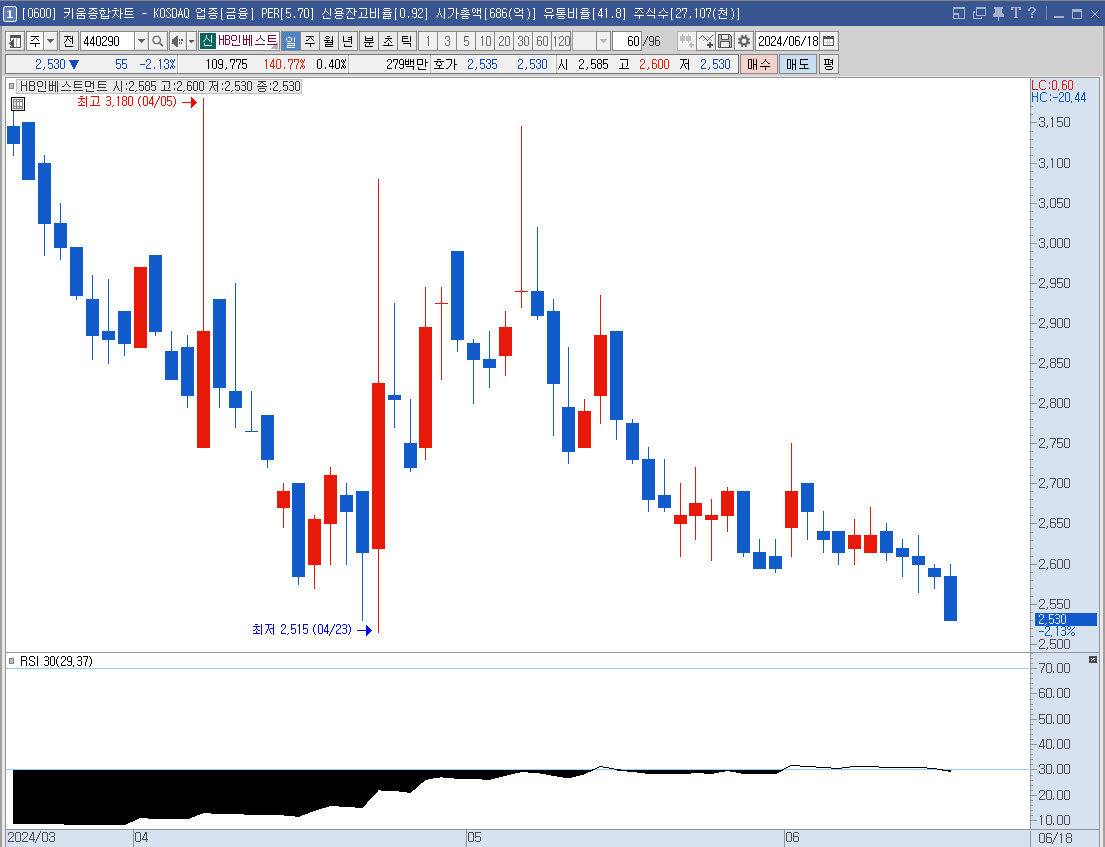 HB인베스트먼트는 현재일 기준 시총 686억의 소형주이다.