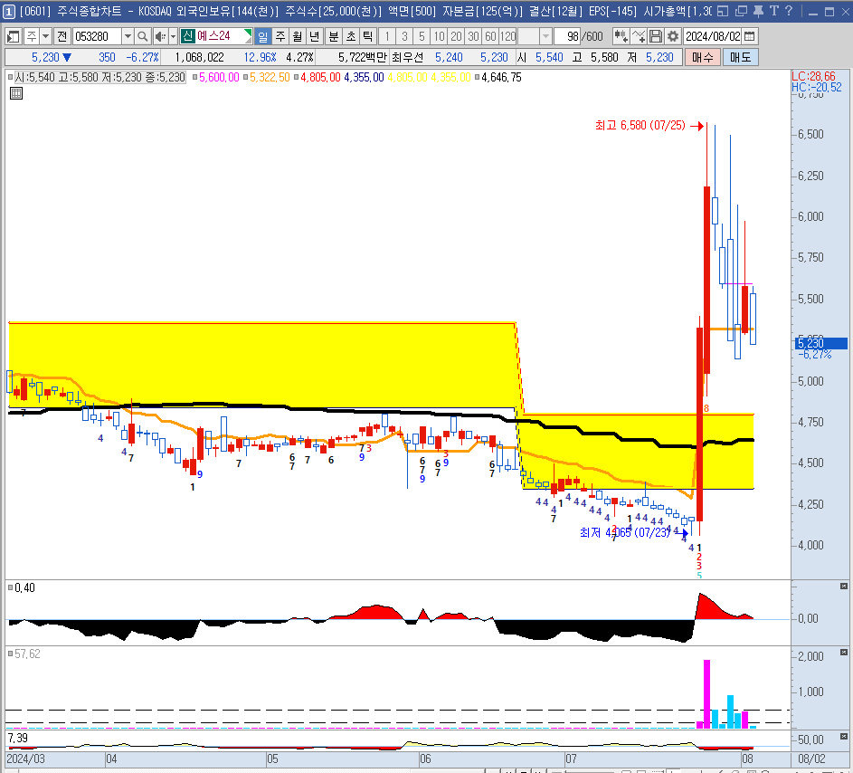 예스 24는 티메프와 인터파크커머스 사태의 반사이익 수혜주로 부각되며 급등하다가 최근 절반이상 조정을 받은 상태이다. 다음 주 반등할 수 있을까?