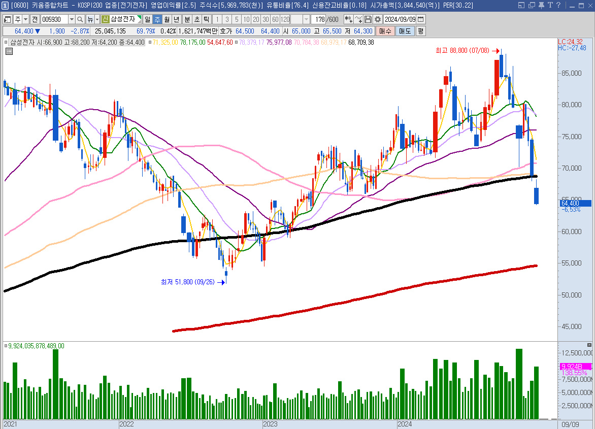 아래는 삼성전자 주봉차트이다.