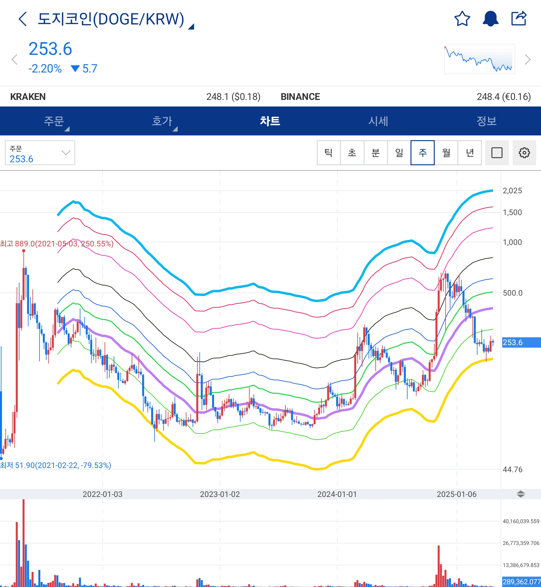아래는 도지코인 주봉입니다.