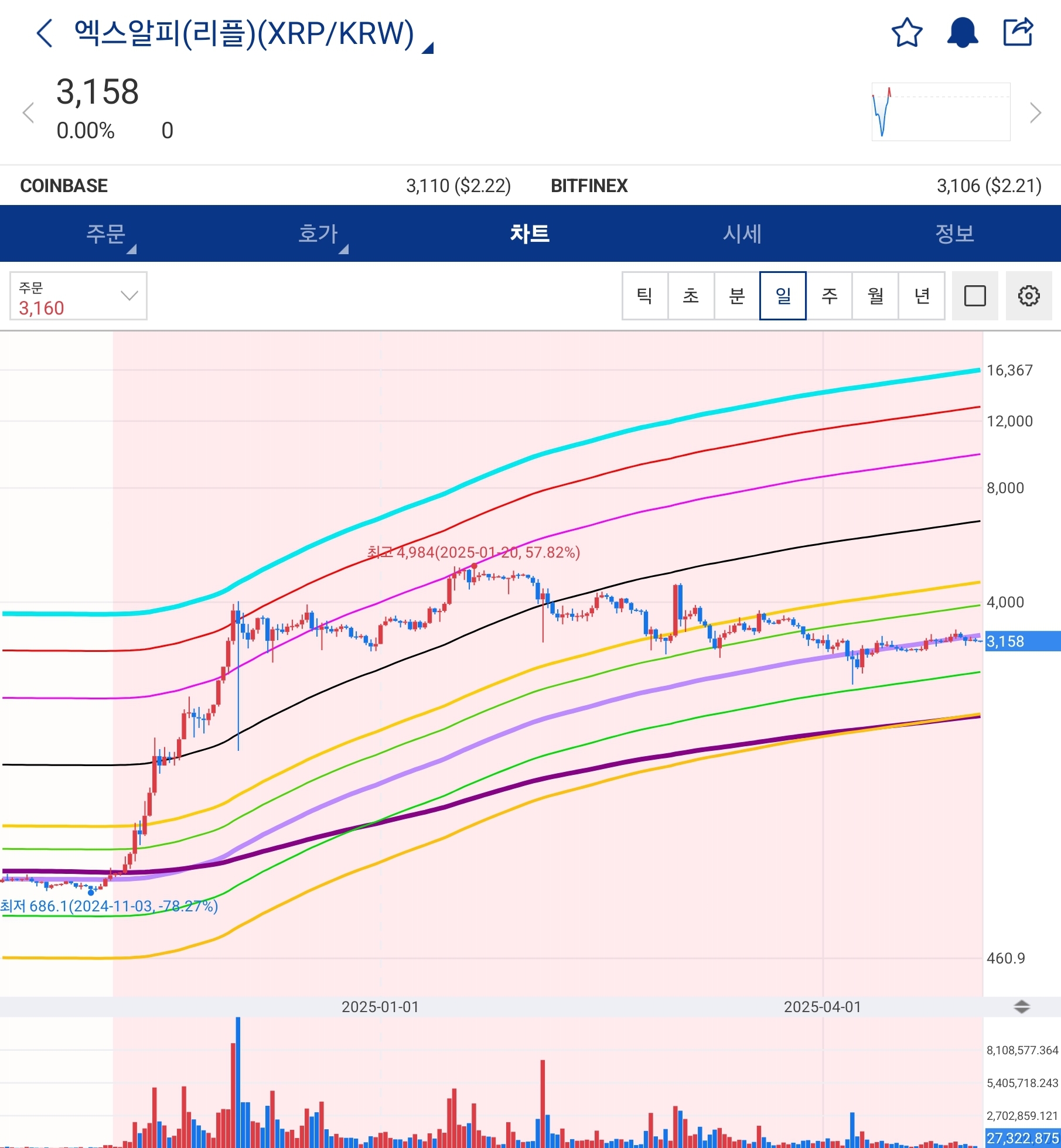 비교대상이 필요할 것 같아 트럼프 캠프에 로비를 많이 했다고 알려진 엑스알피(리플) 차트도 넣어보았습니다.