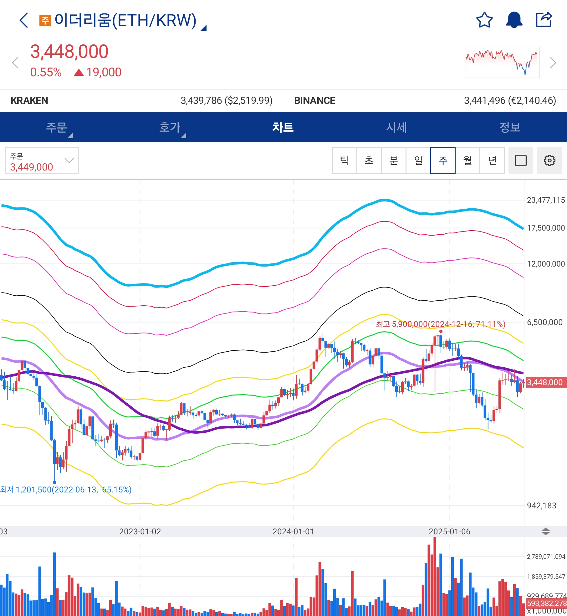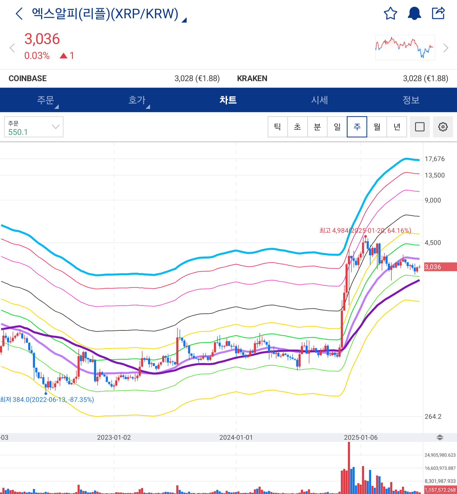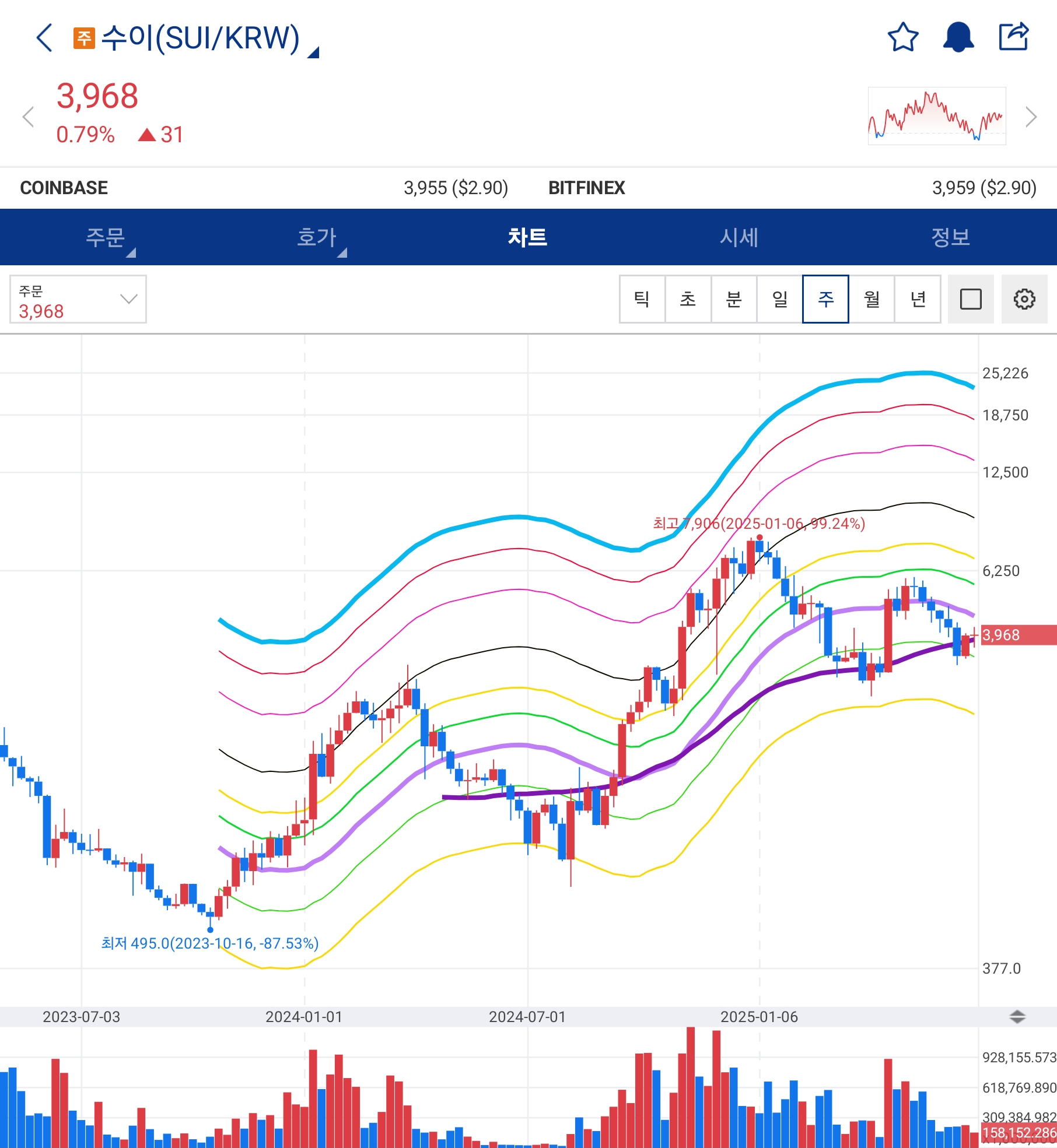 기록용으로 비트코인, 이더리움, 엑스알피(리플), 수이 주봉차트 비교해 봅니다.