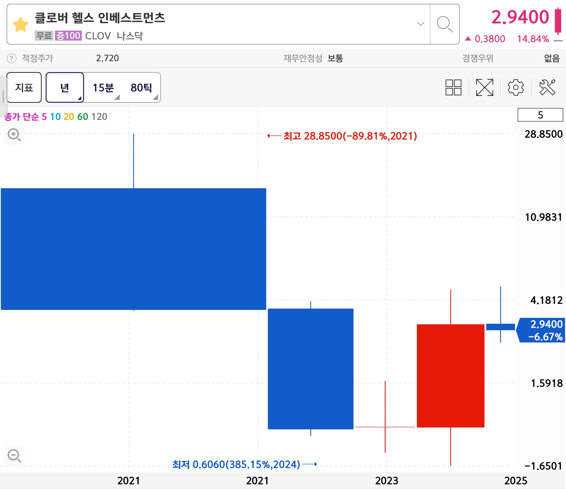 클로버헬스 인베스트먼츠(CLOV) 일봉