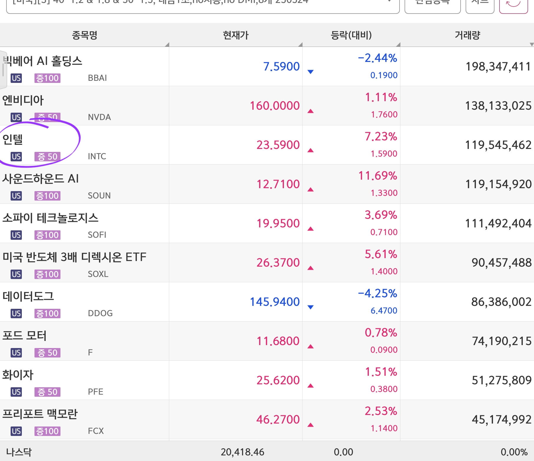 검색기 종목 체크 중 인텔 한번 보고 갑니다.