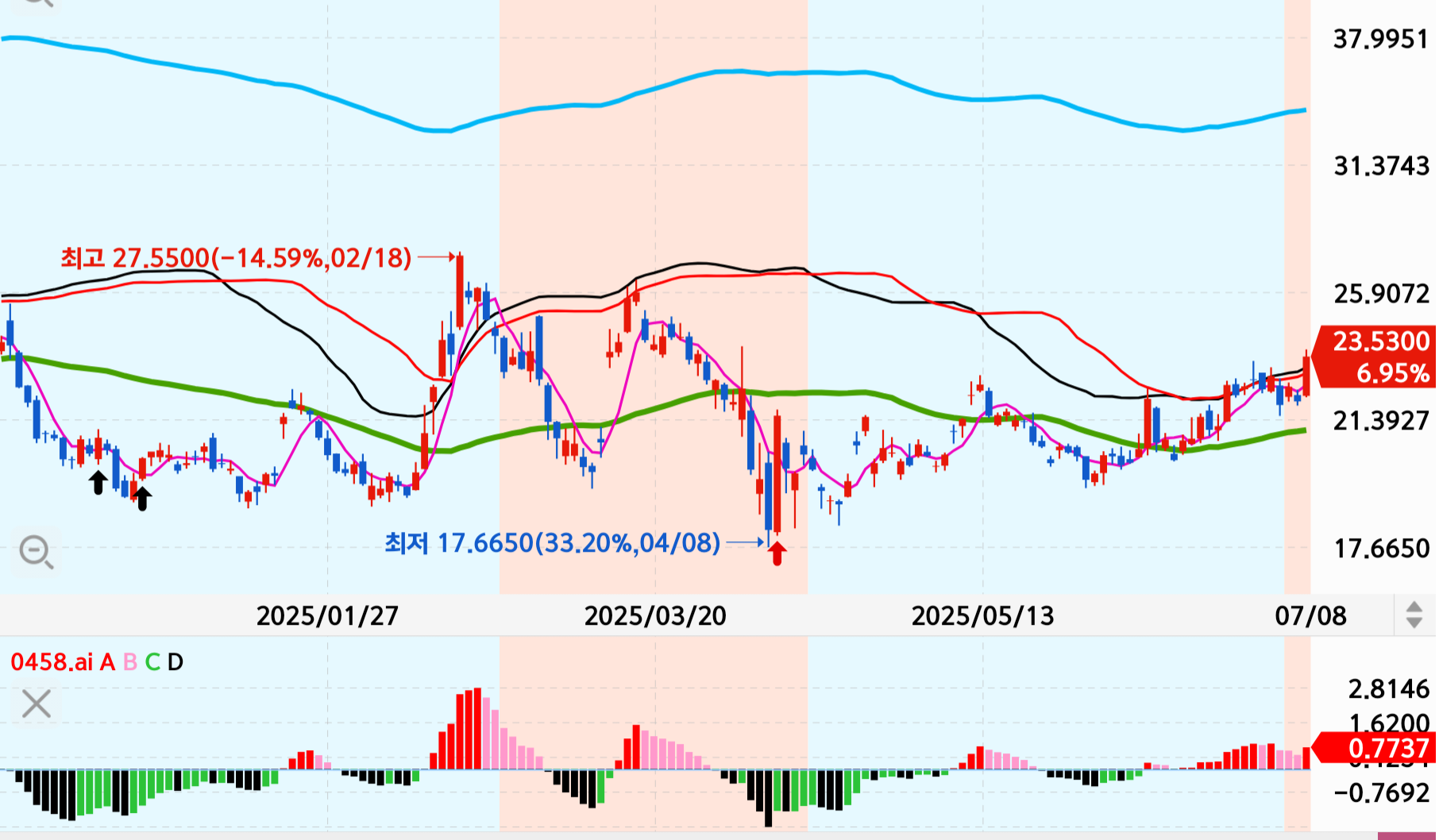 200일 이동평균선 상향 돌파와 플래그 패턴 이탈로, 기술적 매수세 강화되고 있습니다.