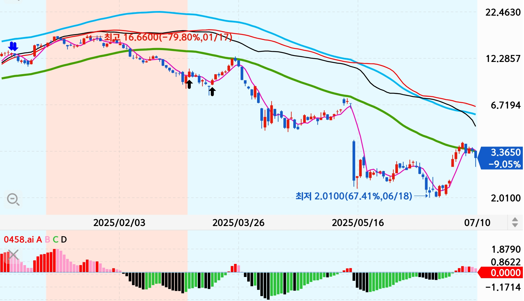 → $25 → $3대로 하락 후 반등 시도 → 정책 수혜 기대감과 실적 개선이 겹칠 경우 폭발력 有