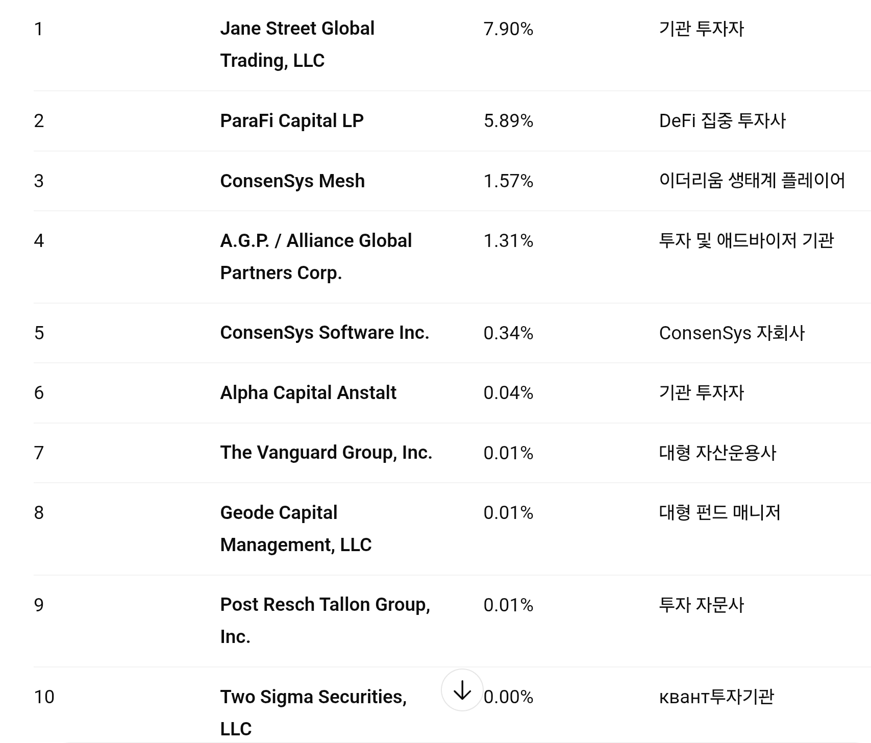 상위 10대 투자자목록