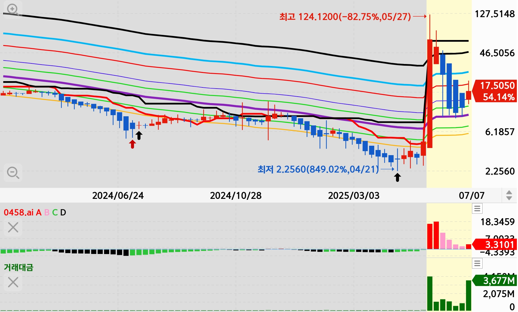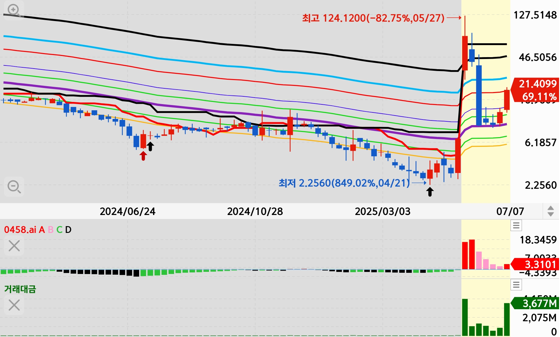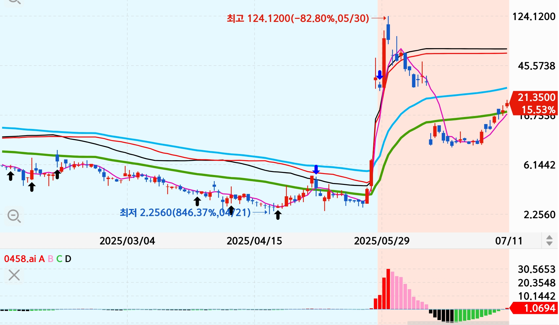 아직 평균선 아래이며 시세 발생하지 않은 것으로 보입니다.